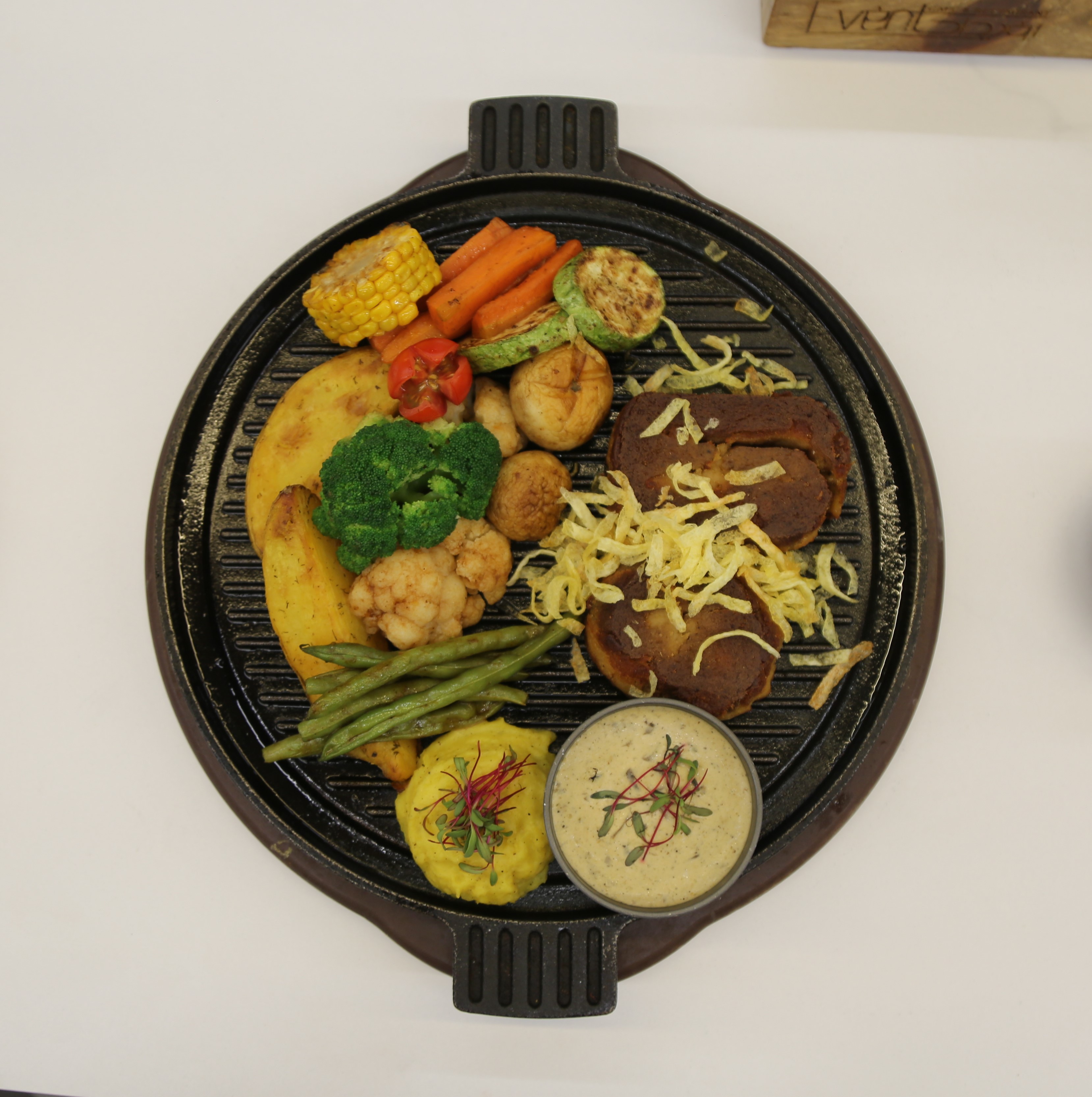 استیک وگان، دورچین سبزیجات،سیبزمینی تنوری